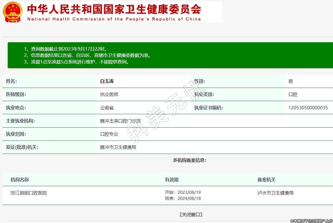 主要執(zhí)業(yè)機(jī)構(gòu):騰沖玉濤口腔門診部