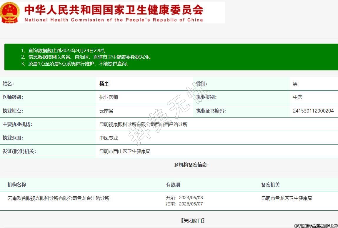 主要執(zhí)業(yè)機(jī)構(gòu):昆明視康眼科診所有限公司西山西昌路診所