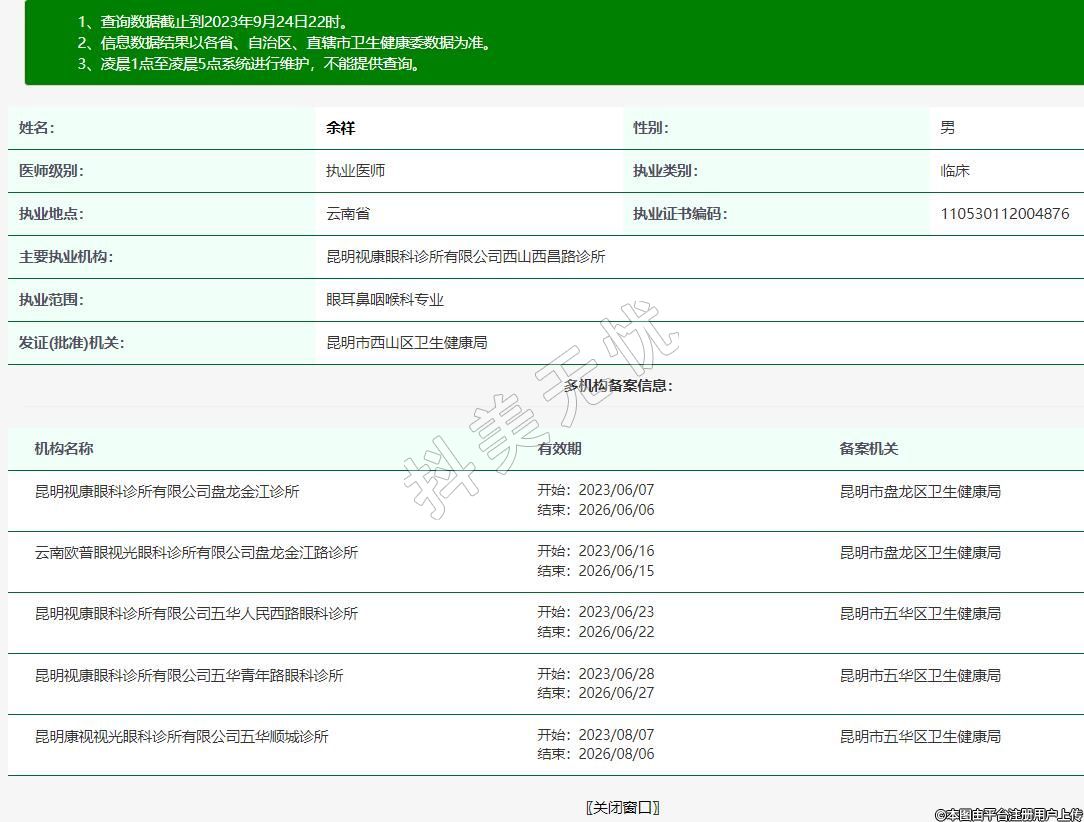主要執(zhí)業(yè)機構:昆明視康眼科診所有限公司西山西昌路診所