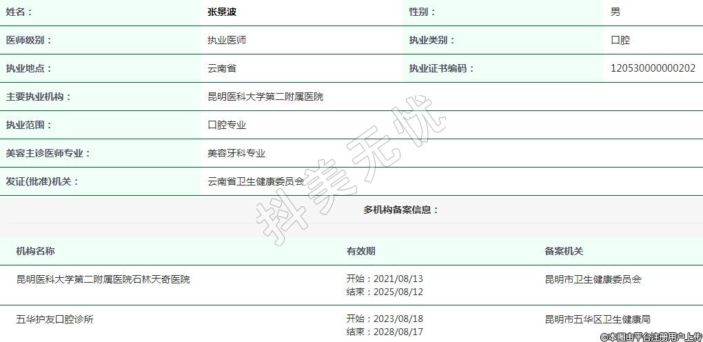 昆明醫(yī)科大學第二附屬醫(yī)院石林天奇醫(yī)院整形執(zhí)業(yè)醫(yī)師