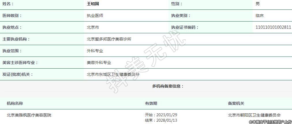 北京美雅楓醫(yī)療美容執(zhí)業(yè)醫(yī)生