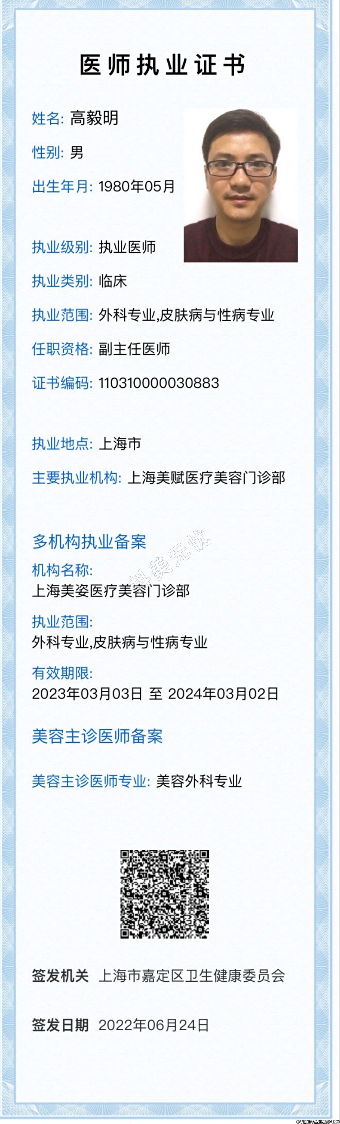 主要執(zhí)業(yè)機(jī)構(gòu):上海美賦醫(yī)療美容門診部