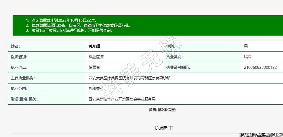 主要執(zhí)業(yè)機構:西安大美醫(yī)療美容醫(yī)院有限公司高新醫(yī)療美容診所