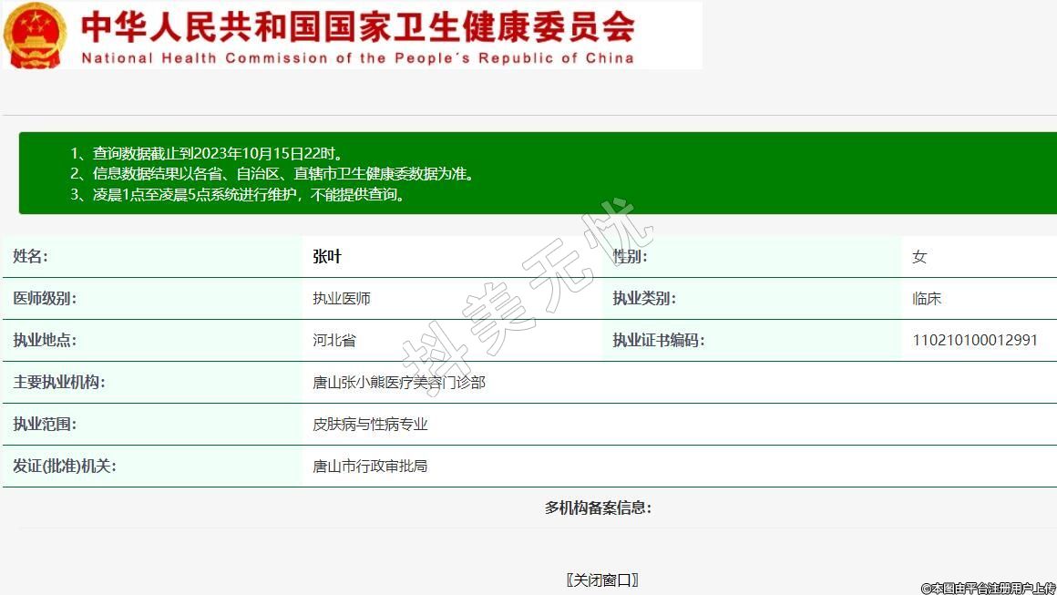 主要執(zhí)業(yè)機構(gòu):唐山張小熊醫(yī)療美容門診部