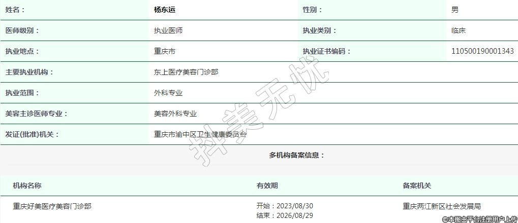 重慶東上醫(yī)療美容執(zhí)業(yè)醫(yī)師