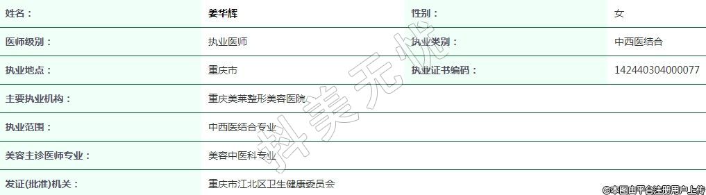 重慶美萊整形美容執(zhí)業(yè)醫(yī)師