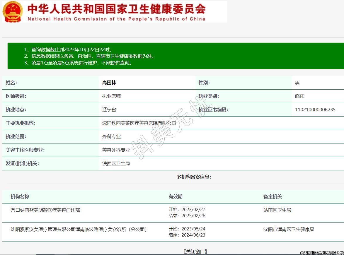 主要執(zhí)業(yè)機構(gòu):沈陽鐵西美萊醫(yī)療美容醫(yī)院有限公司