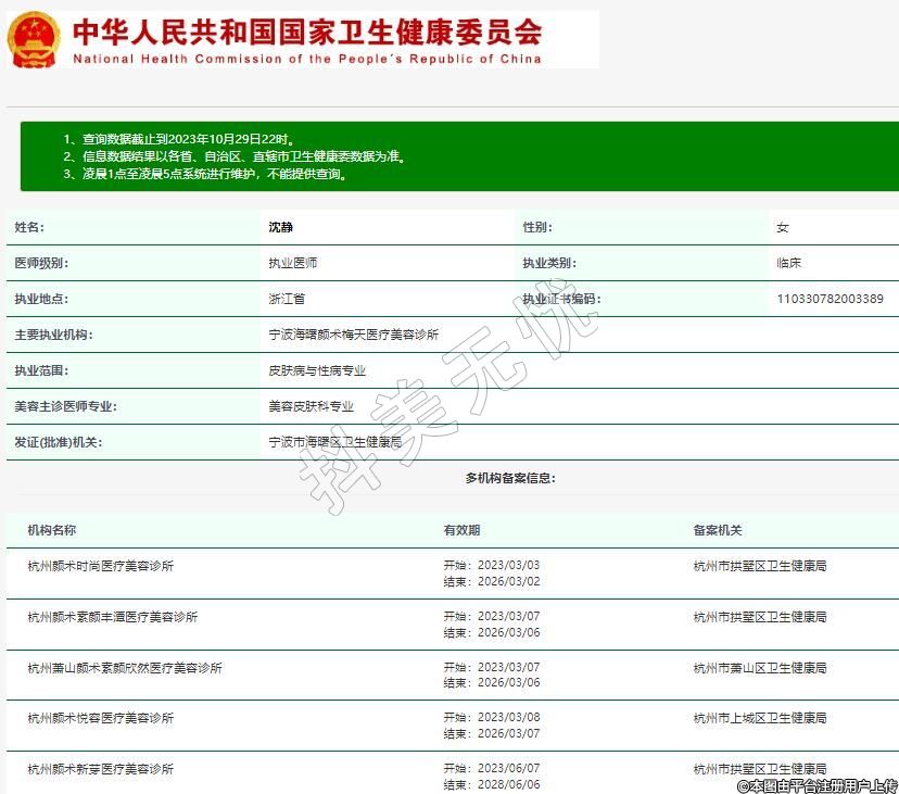 主要執(zhí)業(yè)機構(gòu):寧波海曙顏術(shù)梅天醫(yī)療美容診所
