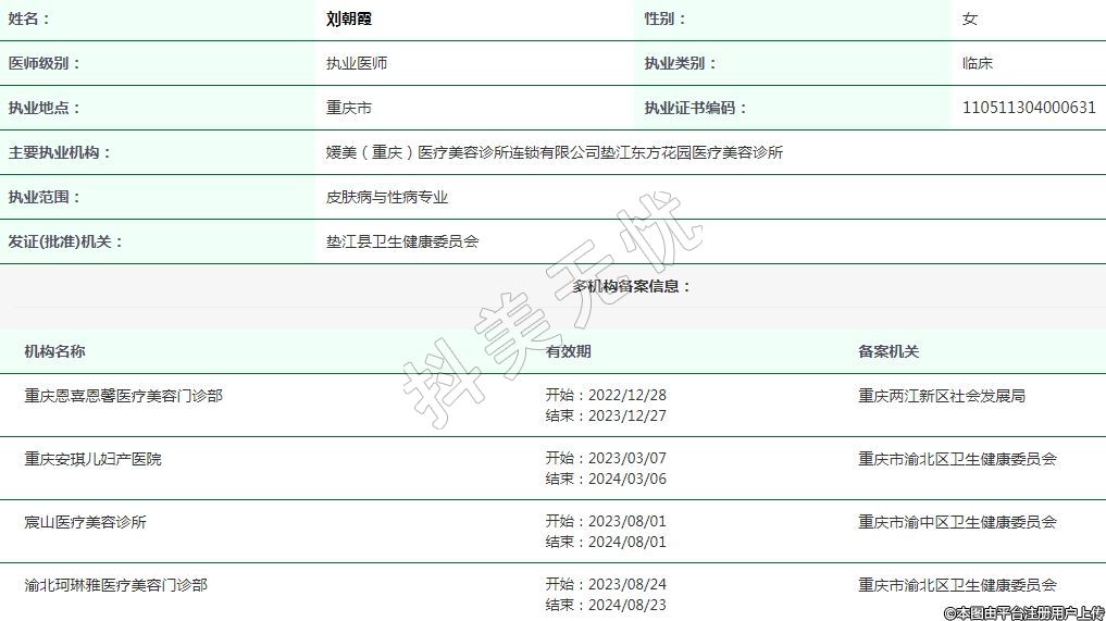 重慶媛美醫(yī)療美容執(zhí)業(yè)醫(yī)師
