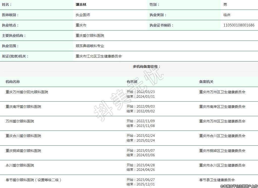 重慶南坪愛爾眼科執(zhí)業(yè)醫(yī)師
