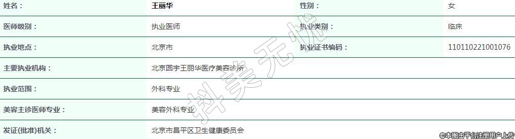 北京圓宇王麗華醫(yī)療美容執(zhí)業(yè)醫(yī)生