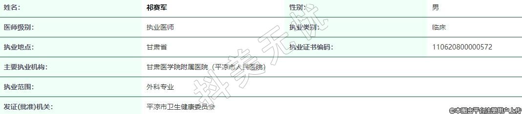 主要執(zhí)業(yè)機構(gòu):甘肅醫(yī)學(xué)院附屬醫(yī)院(平?jīng)鍪腥嗣襻t(yī)院)