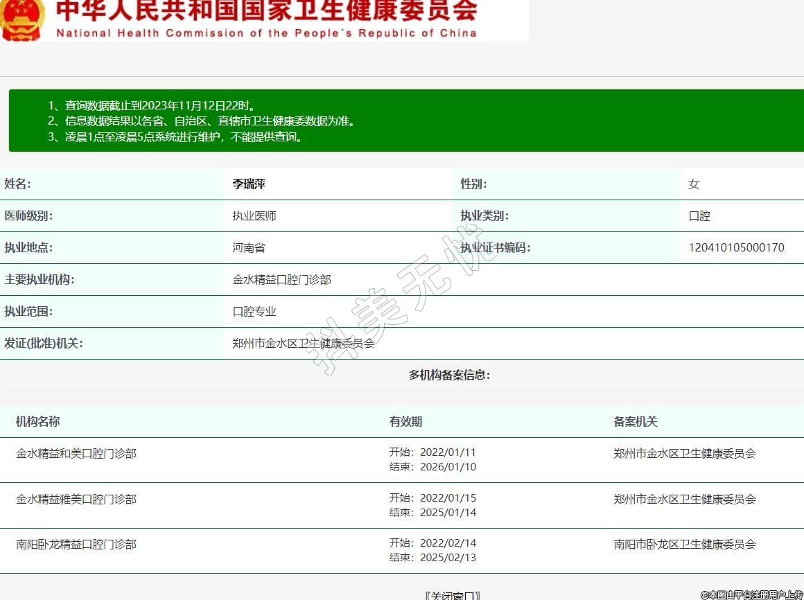 主要執(zhí)業(yè)機構(gòu):金水精益口腔門診部