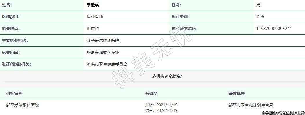 主要執(zhí)業(yè)機構(gòu):萊蕪愛爾眼科醫(yī)院