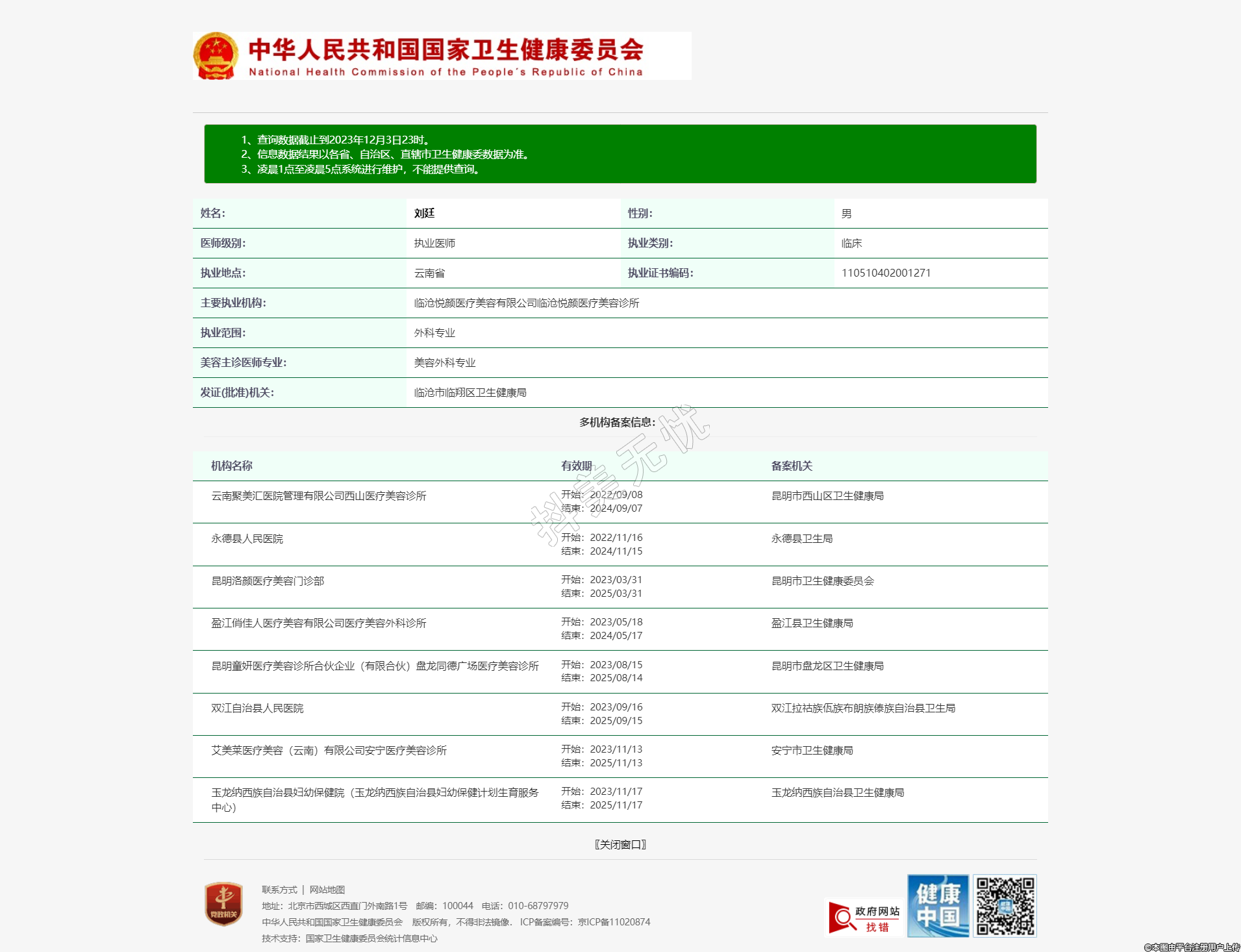 備案機關(guān):昆明市盤龍區(qū)衛(wèi)生健康局