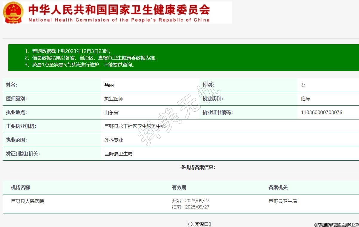 發(fā)證(批準)機關(guān):巨野縣衛(wèi)生局