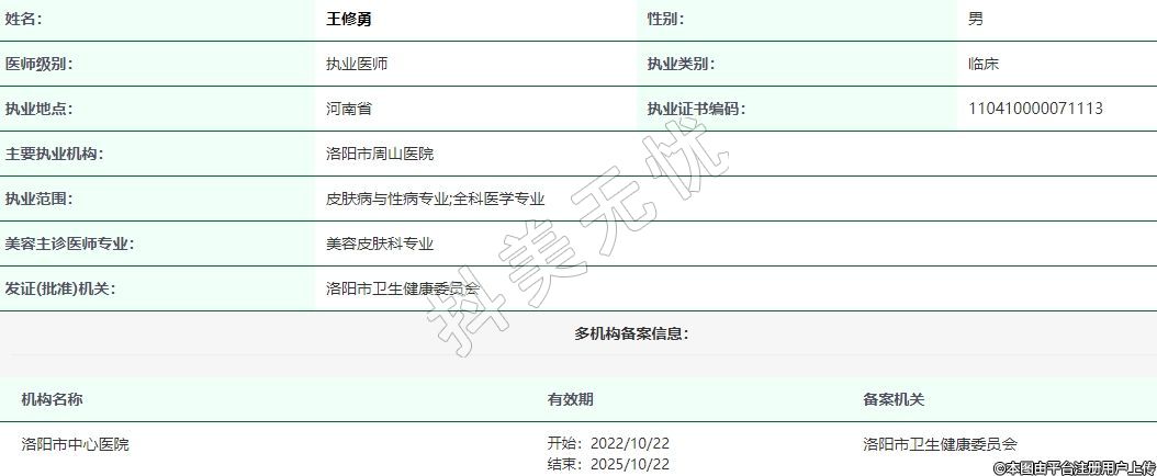 執(zhí)業(yè)范圍:皮膚病與性病專業(yè);全科醫(yī)學(xué)專業(yè)