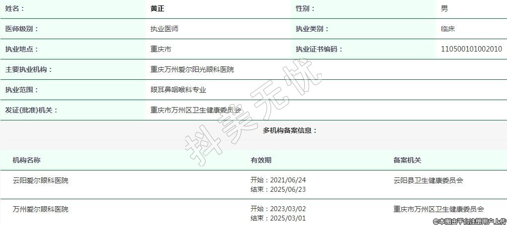 主要執(zhí)業(yè)機構:重慶萬州愛爾陽光眼科醫(yī)院