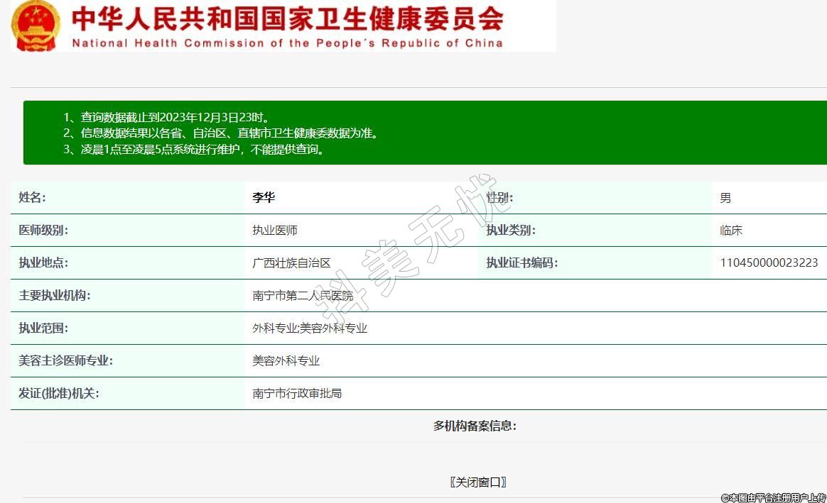 執(zhí)業(yè)范圍:外科專業(yè);美容外科專業(yè)