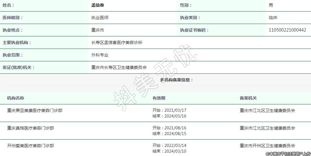 長壽區(qū)孟信春醫(yī)療美容執(zhí)業(yè)醫(yī)師