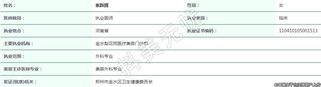 金水梨花雨醫(yī)療美容執(zhí)業(yè)醫(yī)師