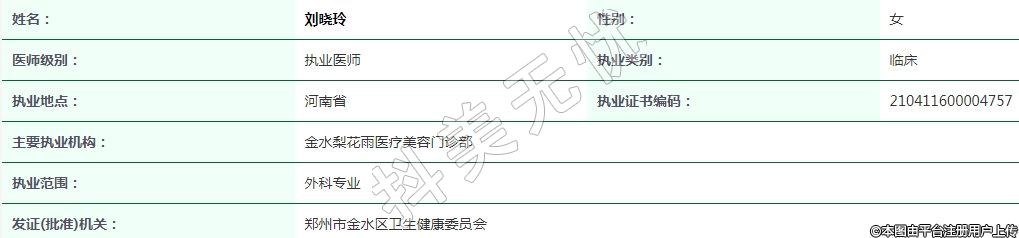 金水梨花雨醫(yī)療美容執(zhí)業(yè)醫(yī)師
