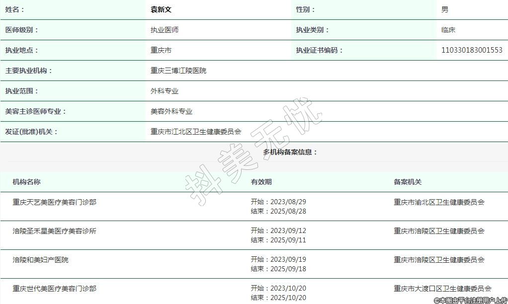 重慶世代美醫(yī)療美容執(zhí)業(yè)醫(yī)師 -