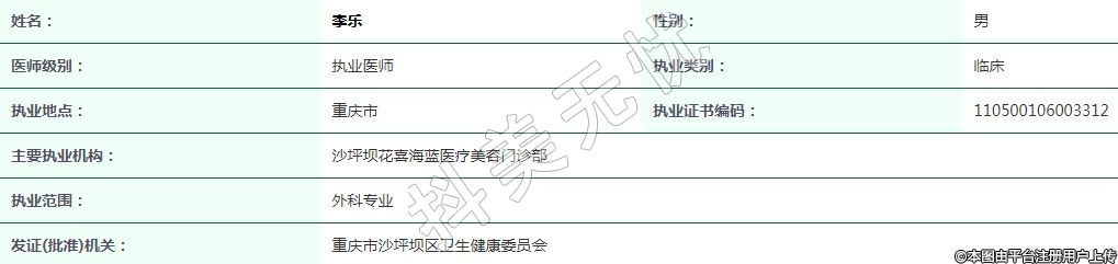 沙坪壩花喜海藍(lán)醫(yī)療美容執(zhí)業(yè)醫(yī)師