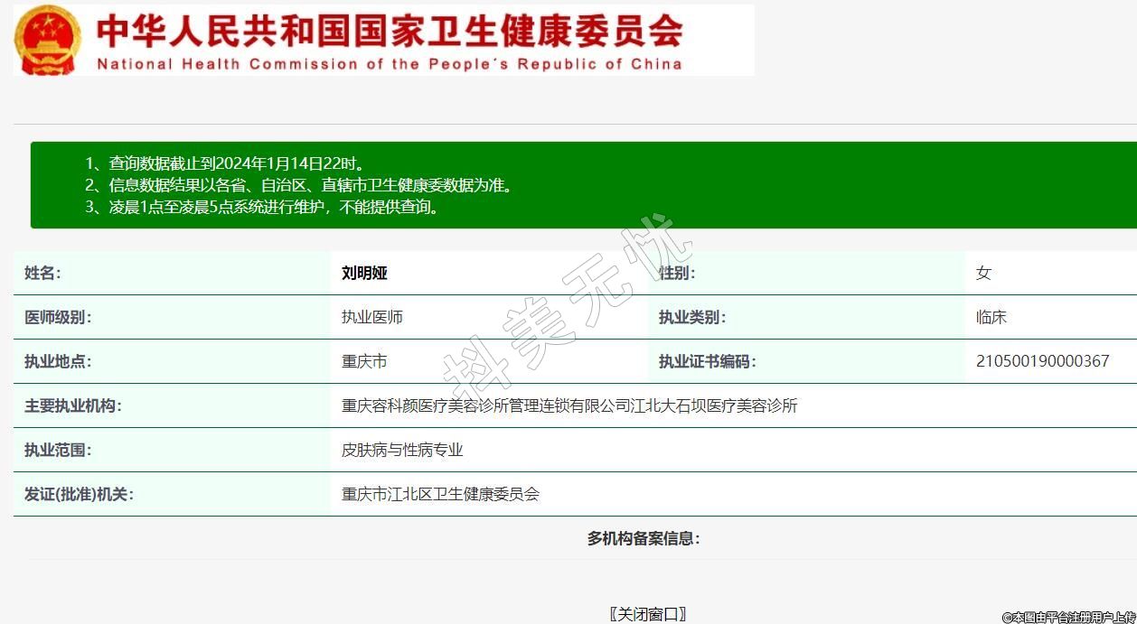 主要執(zhí)業(yè)機(jī)構(gòu):重慶容科顏醫(yī)療美容診所管理連鎖有限公司江北大石壩醫(yī)療美容診所