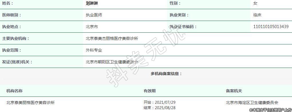 主要執(zhí)業(yè)機構(gòu):北京泰美杰麗格醫(yī)療美容診所