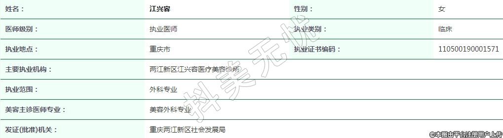 重慶江興容醫(yī)療美容執(zhí)業(yè)醫(yī)師