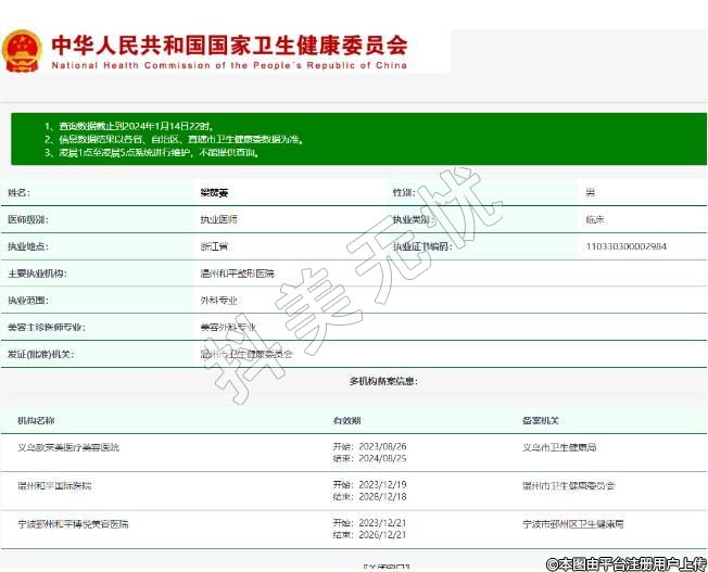 主要執(zhí)業(yè)機(jī)構(gòu):溫州和平整形醫(yī)院