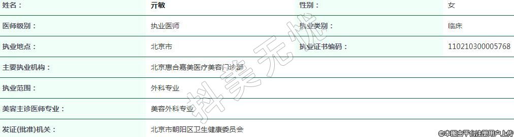 北京惠合嘉美醫(yī)療美容執(zhí)業(yè)醫(yī)生