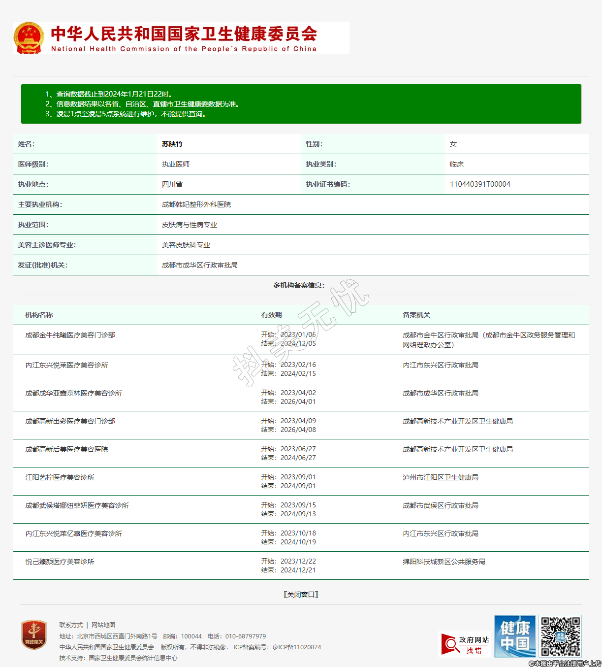 主要執(zhí)業(yè)機構:成都韓妃整形外科醫(yī)院