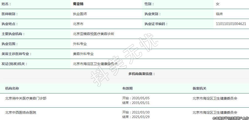主要執(zhí)業(yè)機構(gòu):北京亞楠容悅醫(yī)療美容診所