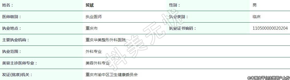 重慶華美整形外科執(zhí)業(yè)醫(yī)師