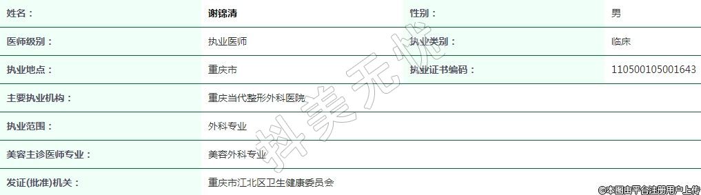 重慶當(dāng)代整形外科執(zhí)業(yè)醫(yī)師
