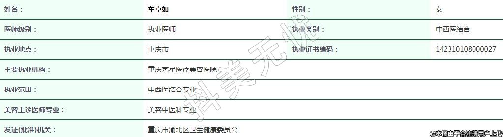 重慶藝星醫(yī)療美容執(zhí)業(yè)醫(yī)師