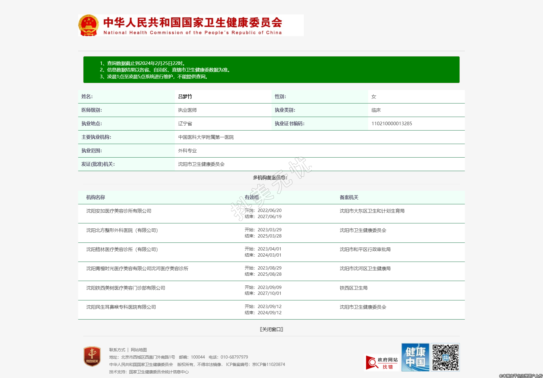 備案機(jī)關(guān):沈陽(yáng)市沈河區(qū)衛(wèi)生健康局