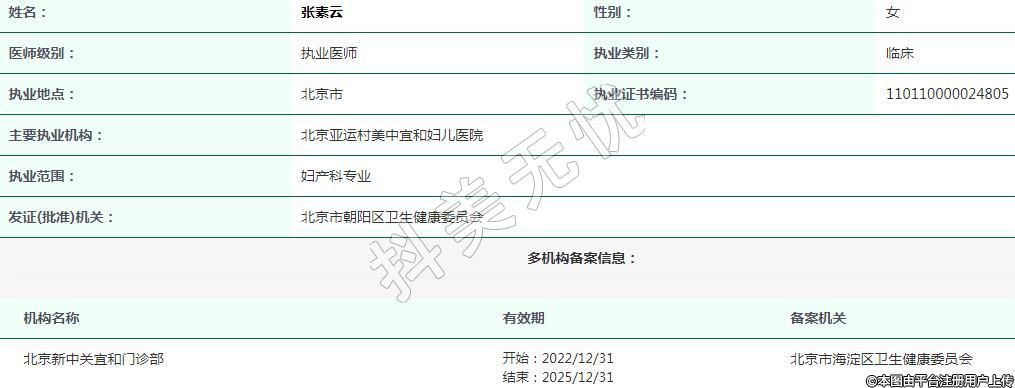 北京亞運(yùn)村美中宜和婦兒醫(yī)院醫(yī)療美容執(zhí)業(yè)醫(yī)生