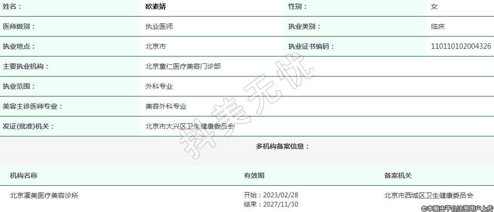 主要執(zhí)業(yè)機(jī)構(gòu):北京童仁醫(yī)療美容門(mén)診部