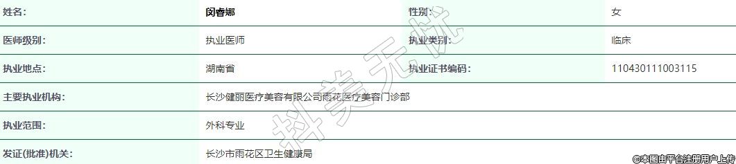主要執(zhí)業(yè)機(jī)構(gòu):長沙健麗醫(yī)療美容有限公司雨花醫(yī)療美容門診部