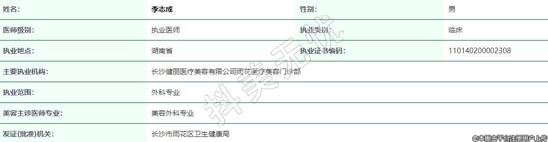 主要執(zhí)業(yè)機構:長沙健麗醫(yī)療美容有限公司雨花醫(yī)療美容門診部