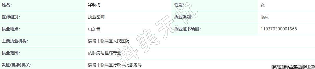 執(zhí)業(yè)范圍:皮膚病與性病專業(yè)
