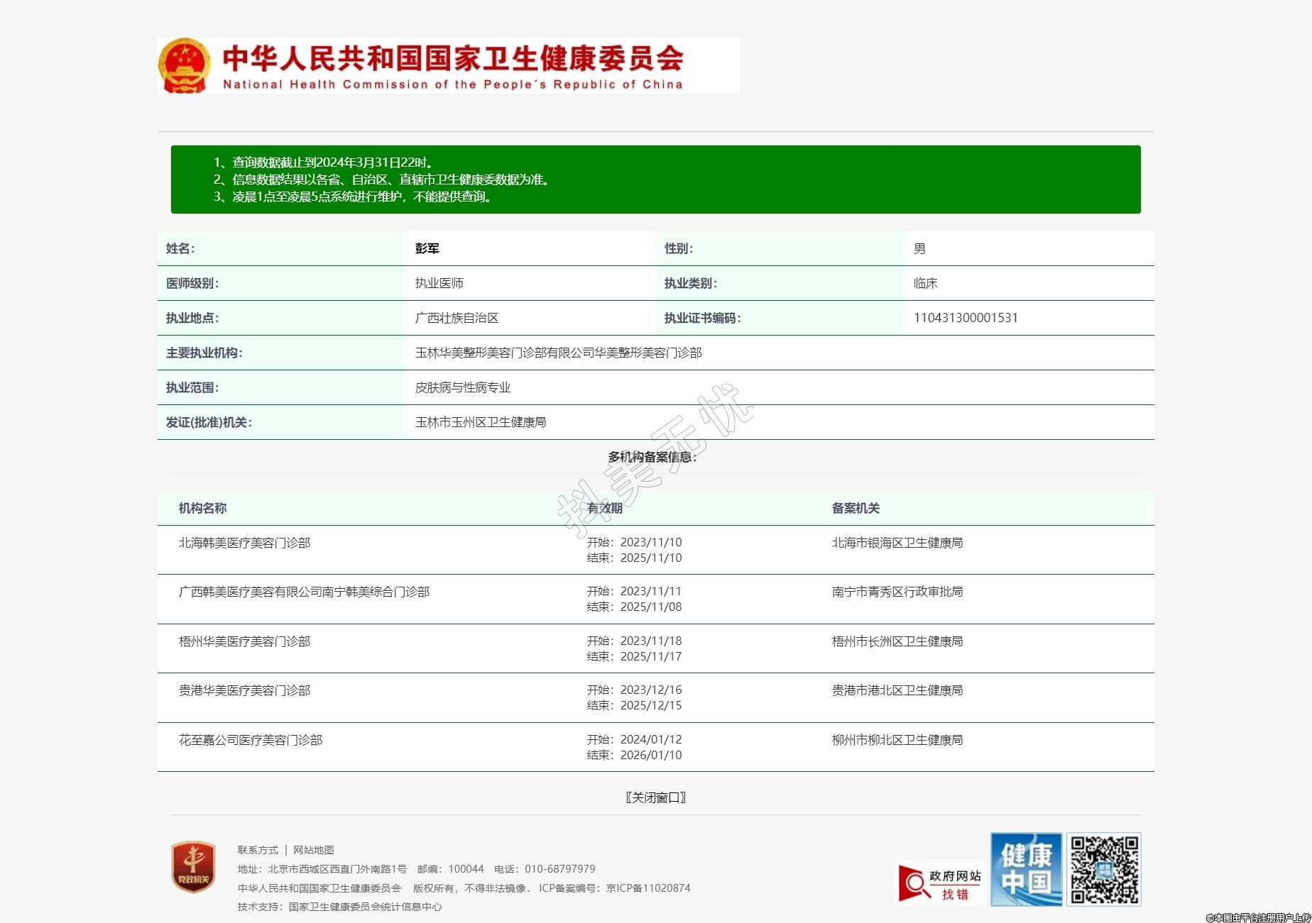 主要執(zhí)業(yè)機(jī)構(gòu):玉林華美整形美容門診部有限公司華美整形美容門診部