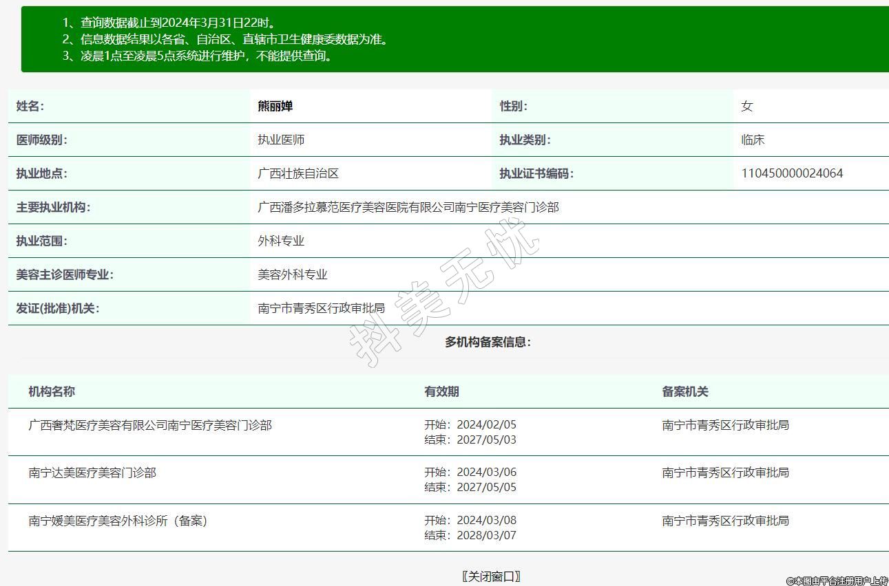 主要執(zhí)業(yè)機構(gòu):廣西潘多拉慕范醫(yī)療美容醫(yī)院有限公司南寧醫(yī)療美容門診部