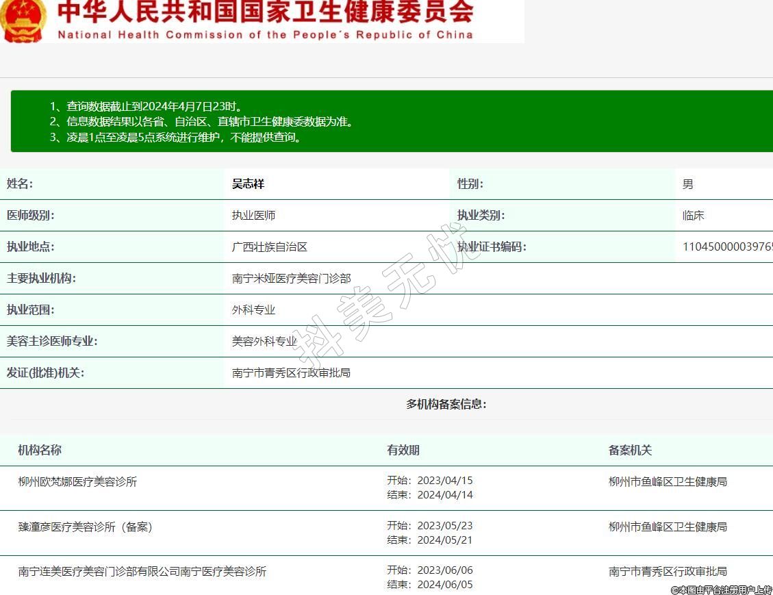 主要執(zhí)業(yè)機(jī)構(gòu):南寧米婭醫(yī)療美容門(mén)診部