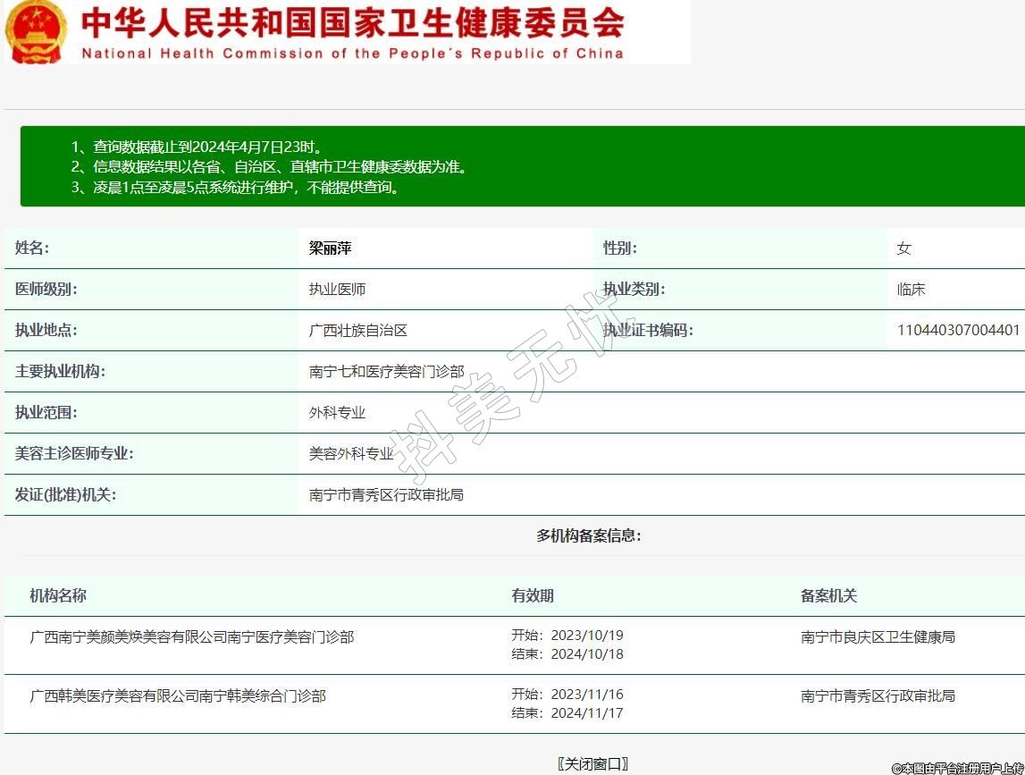 主要執(zhí)業(yè)機(jī)構(gòu):南寧七和醫(yī)療美容門診部