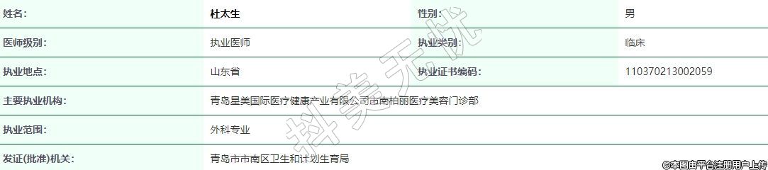 主要執(zhí)業(yè)機構(gòu):青島星美國際醫(yī)療健康產(chǎn)業(yè)有限公司市南柏麗醫(yī)療美容門診部