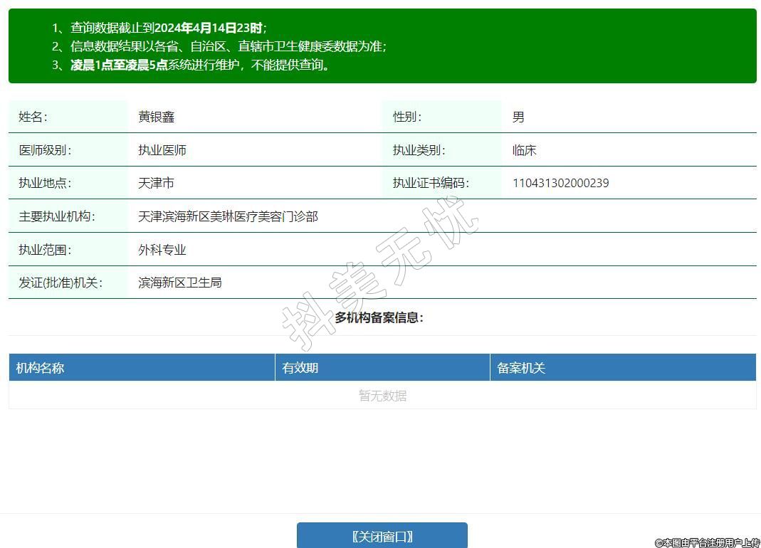 主要執(zhí)業(yè)機(jī)構(gòu):天津?yàn)I海新區(qū)美琳醫(yī)療美容門(mén)診部